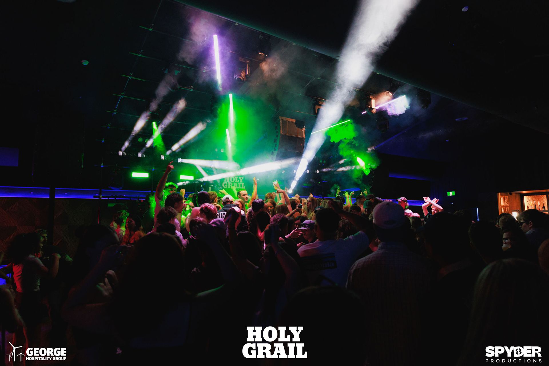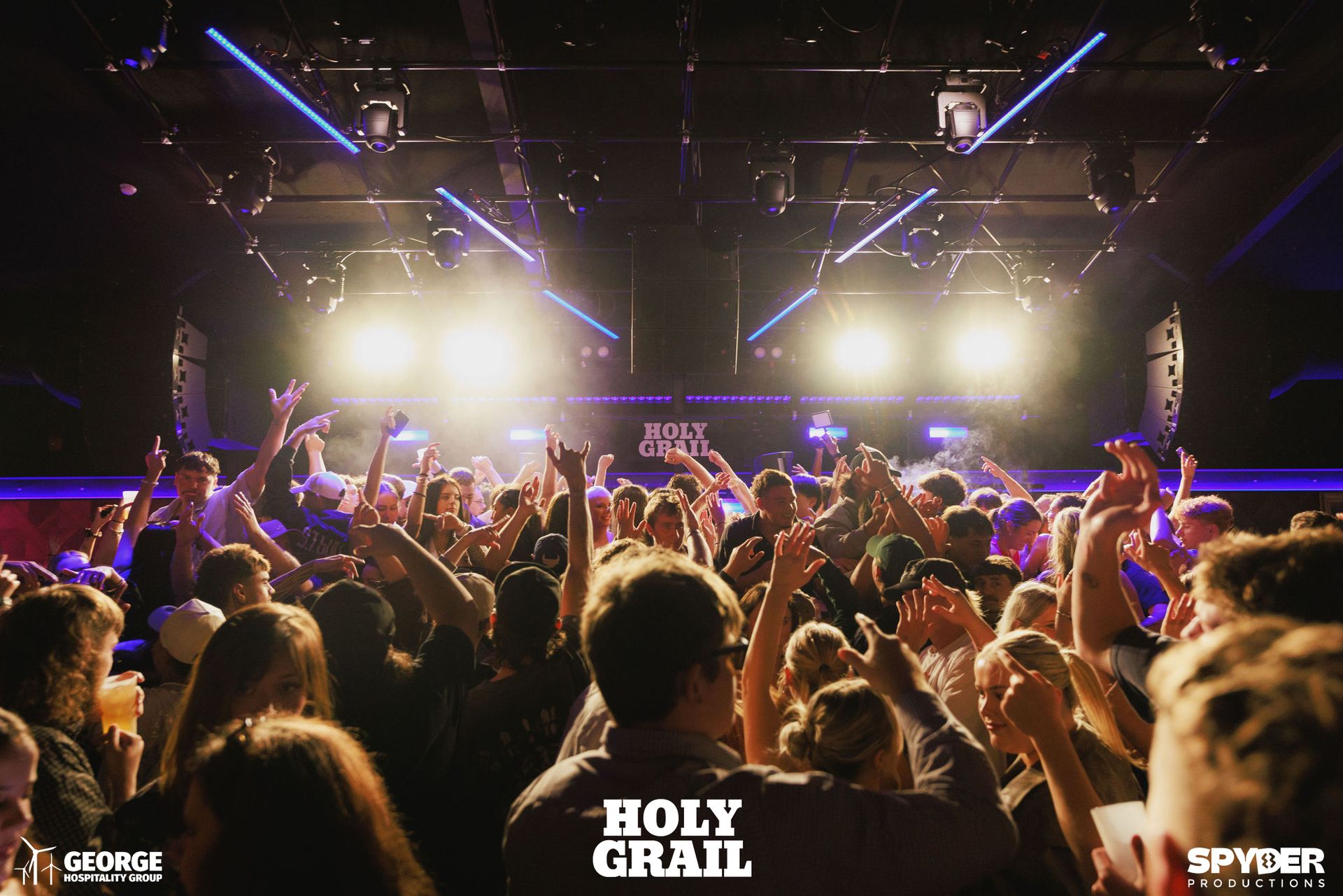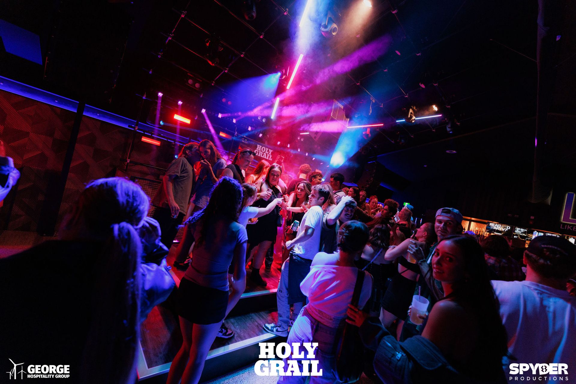 The lighting system at The Holy Grail demonstrates how modern nightclub installations can rival the production quality of touring shows.